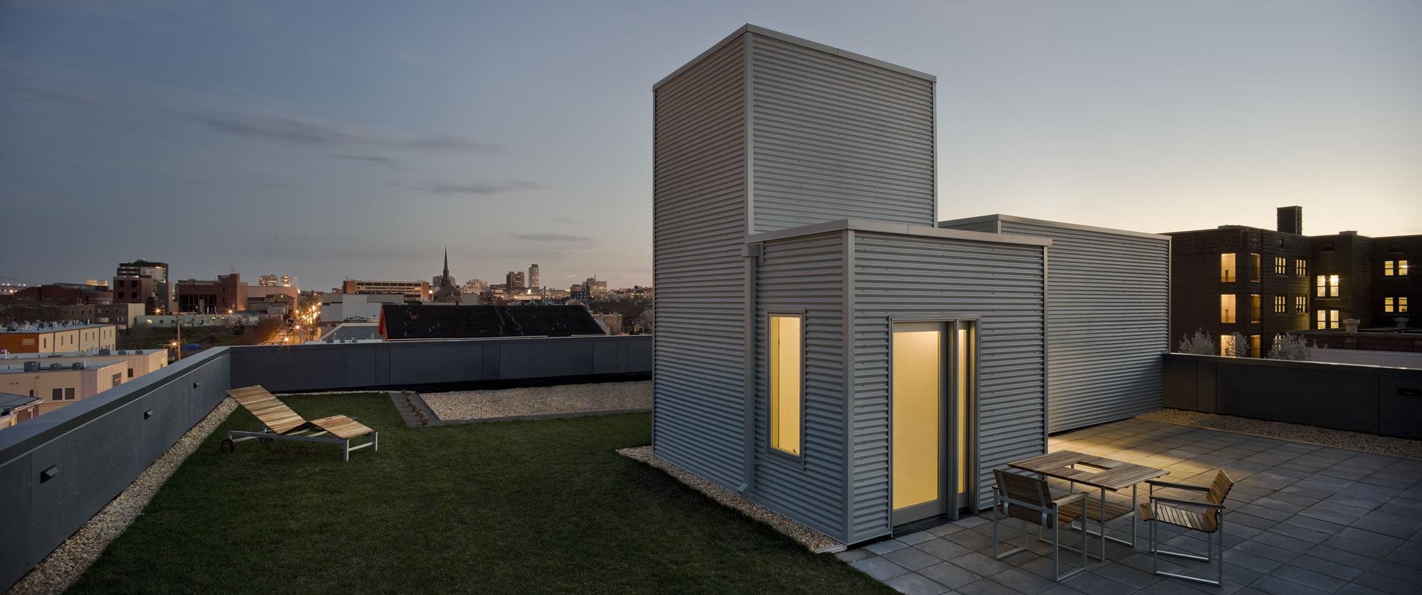 The roof of this building was designed to support a lush green roof on the majority of the roof area, which could be used by the tenant for parties and sun bathing.