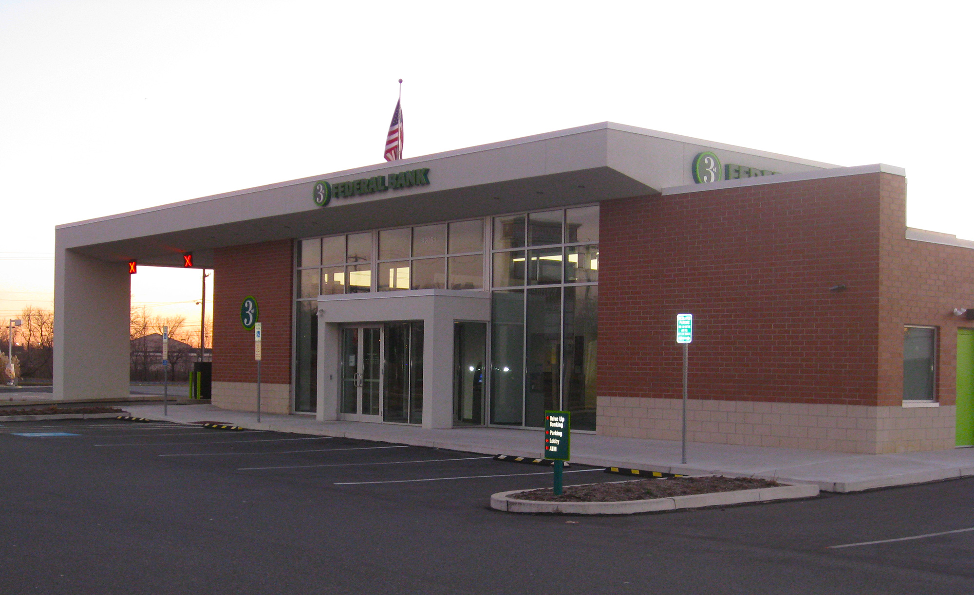 This one-story bank branch had a multi-level roof area in order to allow for natural light emission into the main lobby area. The project was awarded Gold LEED certification.
